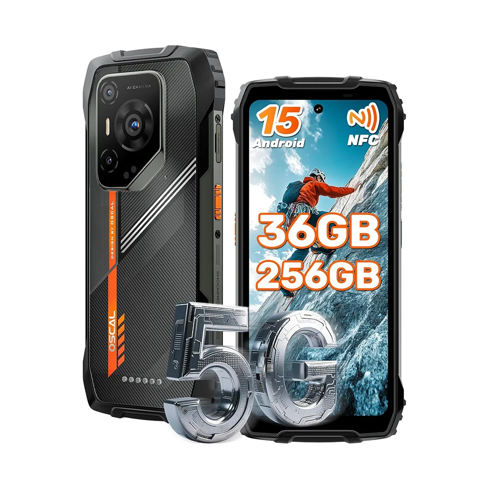 OSCAL PILOT 3 Telefono Robusto, Smartphone Android 15 Resistente 5G Dimensity 6300, (12+24)GB RAM 256GB ROM, Display 6.78" 120Hz, 7700mAh
