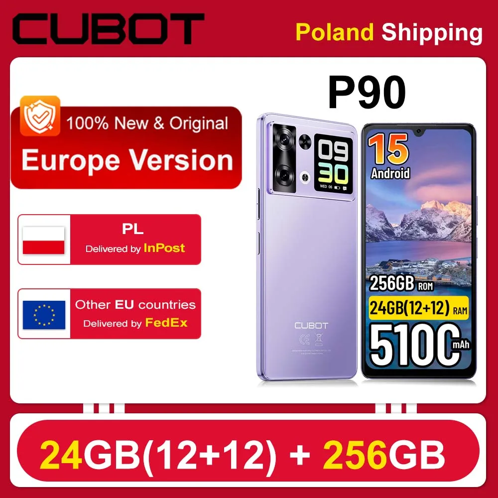[Spedizione dalla Polonia] Smartphone Cubot P90 5100mAh Android 15 24(12+12)GB + 256GB 6.88" 120Hz 64MP Telefono Cellulare NFC Impronta Digitale