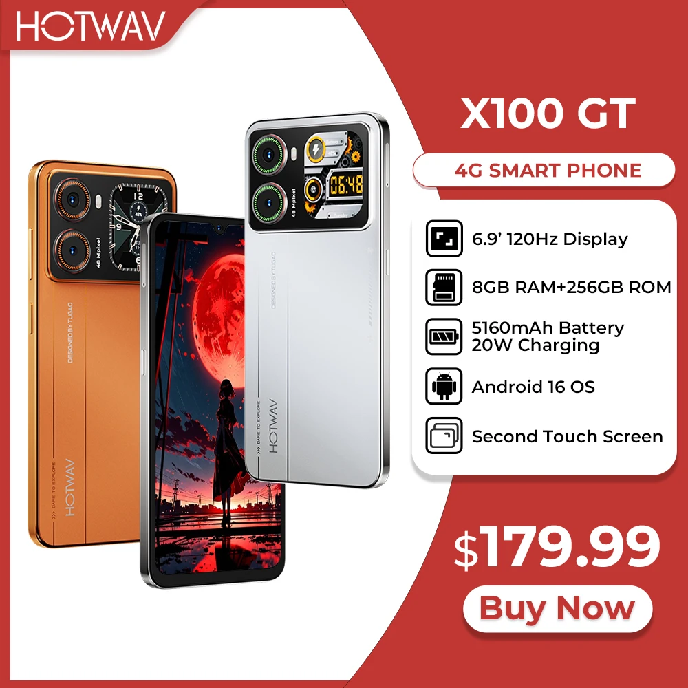 HOTWAV X100 GT Smartphone Android 16, 6.9'' 120Hz, 48MP, 5160mAh, 20W, Telefono Cellulare con Secondo Schermo, 8GB 256GB, Blaster IR