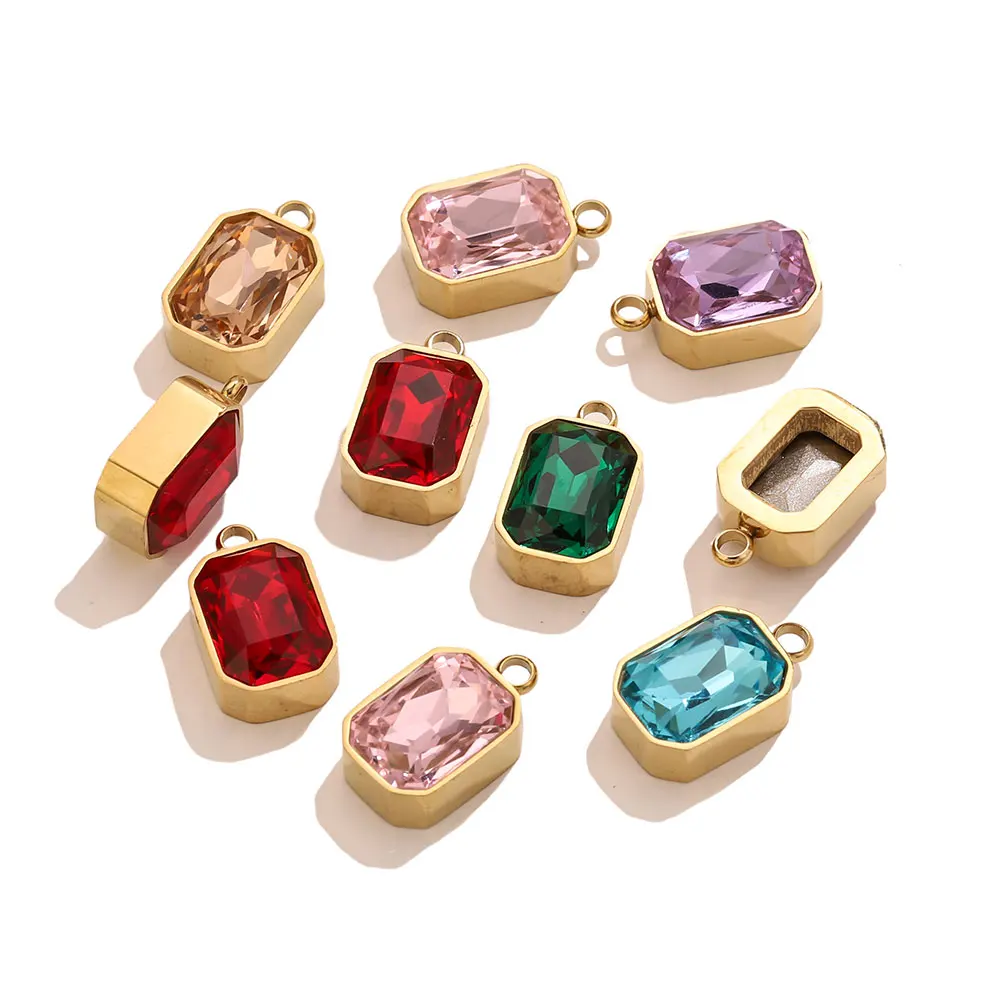 Set di 3 Ciondoli Rettangolari in Acciaio Inox e Cristallo per Creazione di Gioielli Fai-da-Te, Orecchini, Collane e Bracciali, Accessori all'Ingrosso