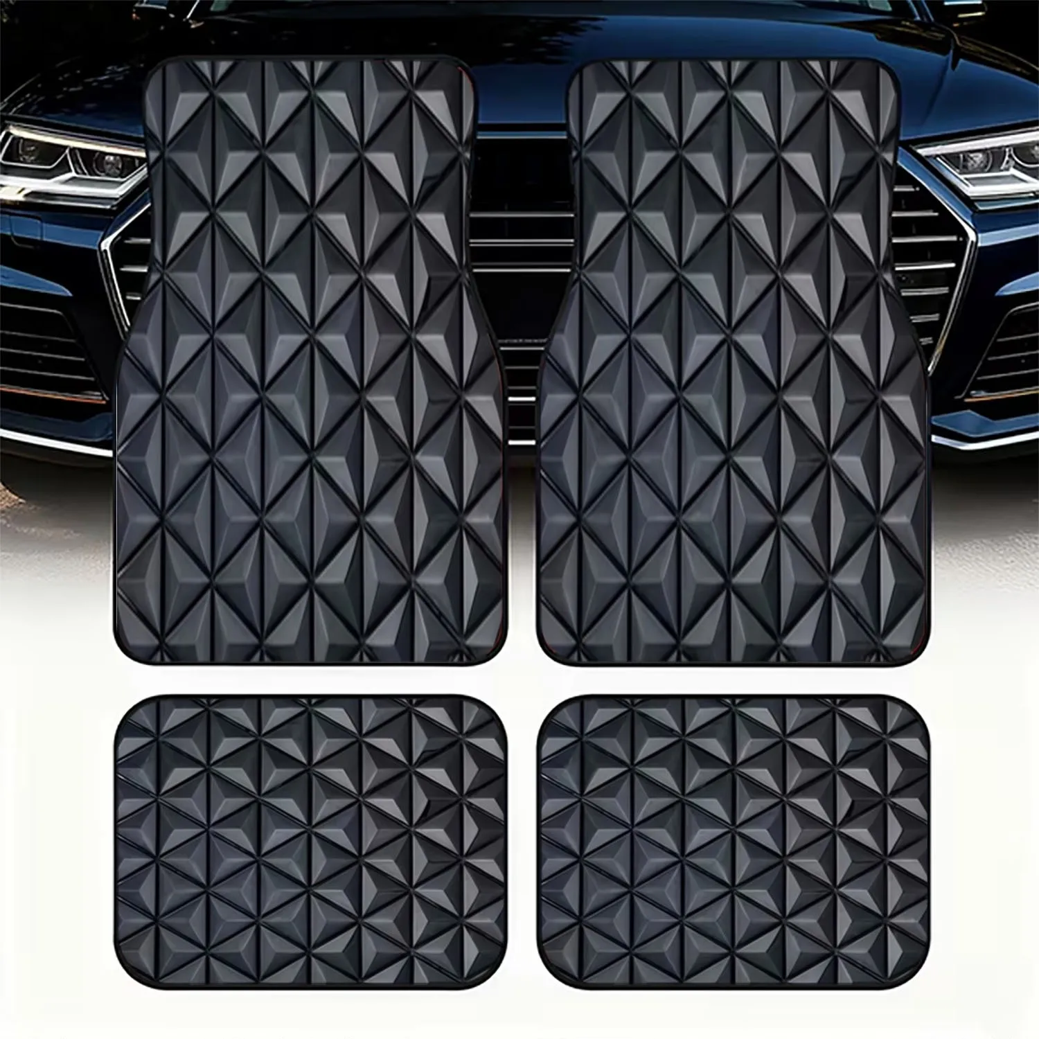 Tappetini per auto 4 pezzi | Materiale in poliestere, motivo geometrico moderno con trama triangolare nera 3D, vestibilità universale per interni auto