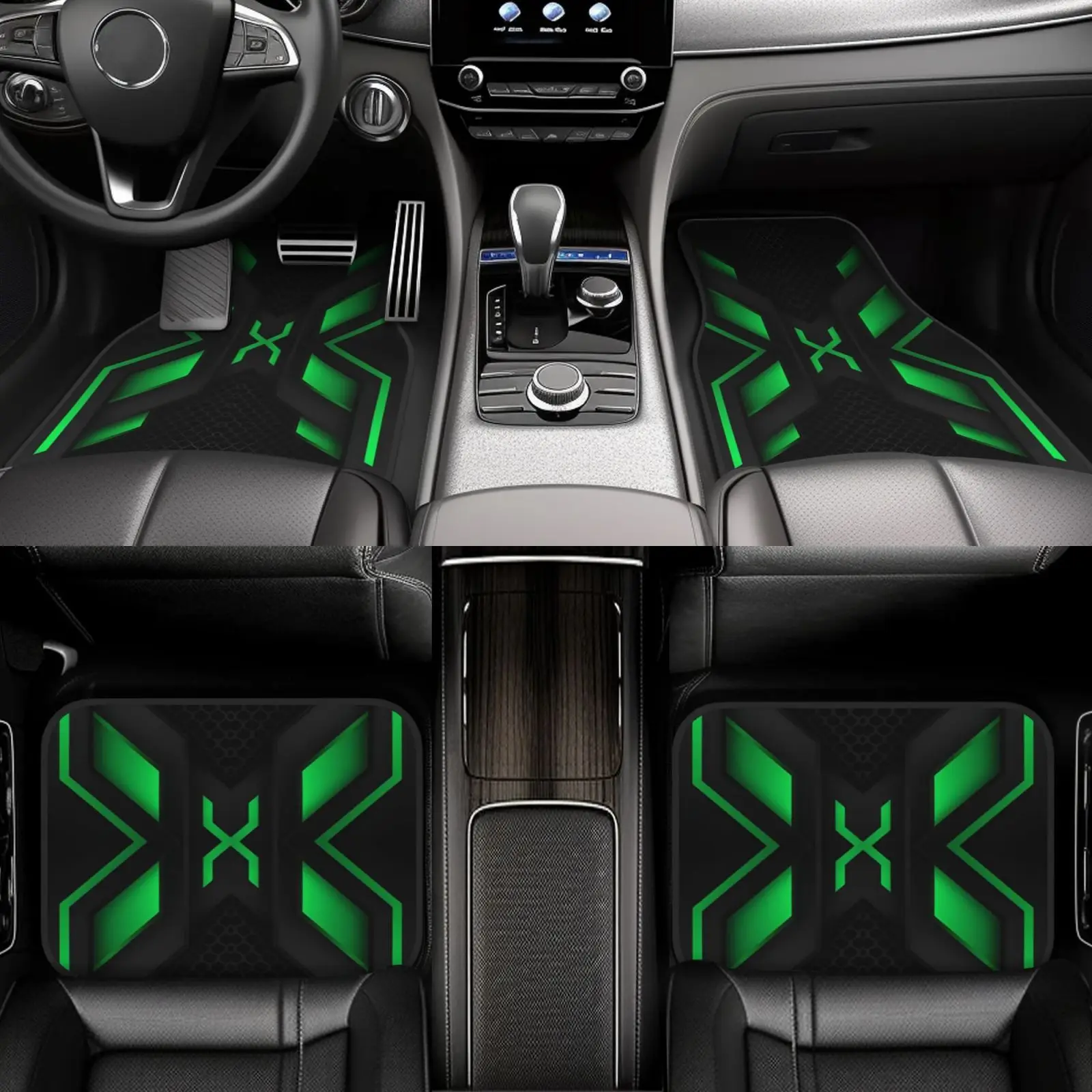 Set di 4 Eleganti Tappetini per Auto | Design geometrico verde e nero - Poliestere resistente, adatto alla maggior parte di auto, SUV e camion | Inter