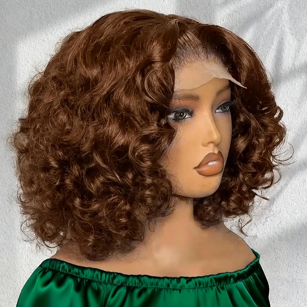 Parrucche frontali in pizzo a onda corta Bob 13x4 14 16 pollici Parrucca anteriore in pizzo HD ondulata marrone cioccolato Parrucche brasiliane per capelli umani senza colla