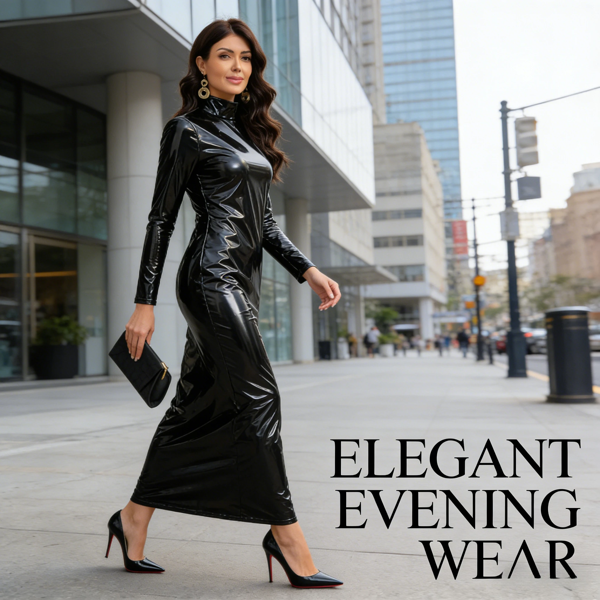 Abito in Pelle PU a Vita Alta, Moda Europea e Americana, Vestito Aderente da Donna, Elegante Abito Corto per Feste e Serate