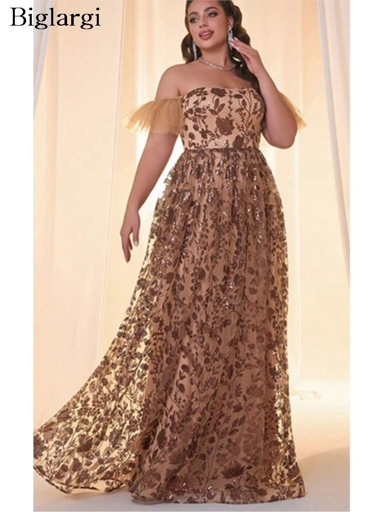 TOLEEN Women Plus Size Maxi abiti abito da sera con scollo a barchetta con paillettes di fascia alta abito da sera a coda di pesce abito formale da ballo di lusso leggero