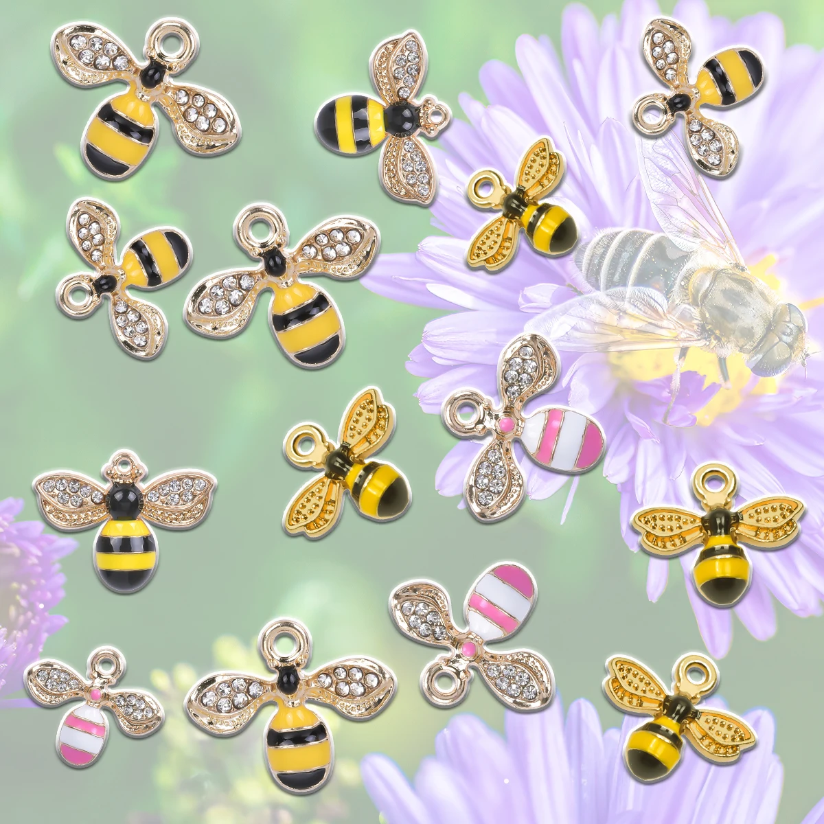 10-100 pz/lotto Smalto Giallo Ape Pendenti e Ciondoli Strass Miele Ape Pendenti e Ciondoli Artigianato Forniture per Jelwery Braccialetti Che Fanno I Risultati