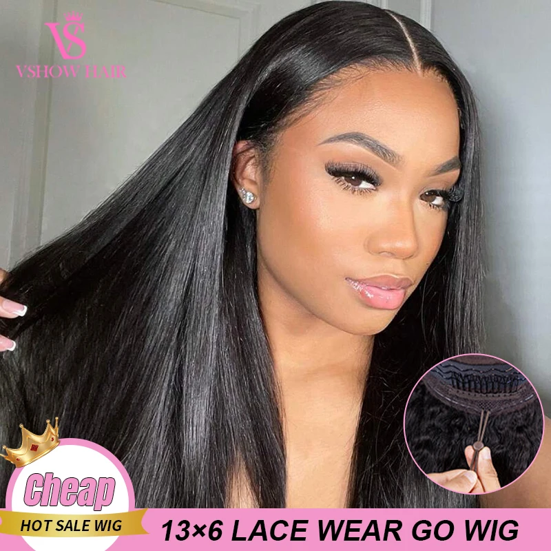 VSHOW Dritto 13x6 Max Veletta Frontale Parrucche Dei Capelli Umani Pre Taglio Del Merletto Con Coulisse Wear & Go Parrucche Nodi Candeggiati Parrucche Glueless