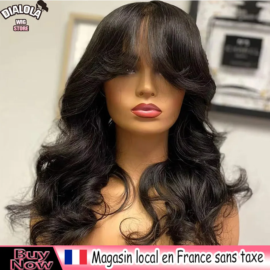 Parrucche per capelli umani Dialola Full Machine Body Wave Parrucca per capelli sciolti con frangia Parrucca nera naturale Capelli umani pre-pizzicati per le donne
