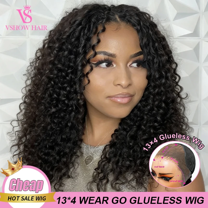 Parrucche per capelli con sciarpa a onde profonde Parrucche per capelli umani al 100% Parrucca riccia a densità 200% Nessuna colla Nessuna cucitura ai capelli VSHOW adatti ai principianti