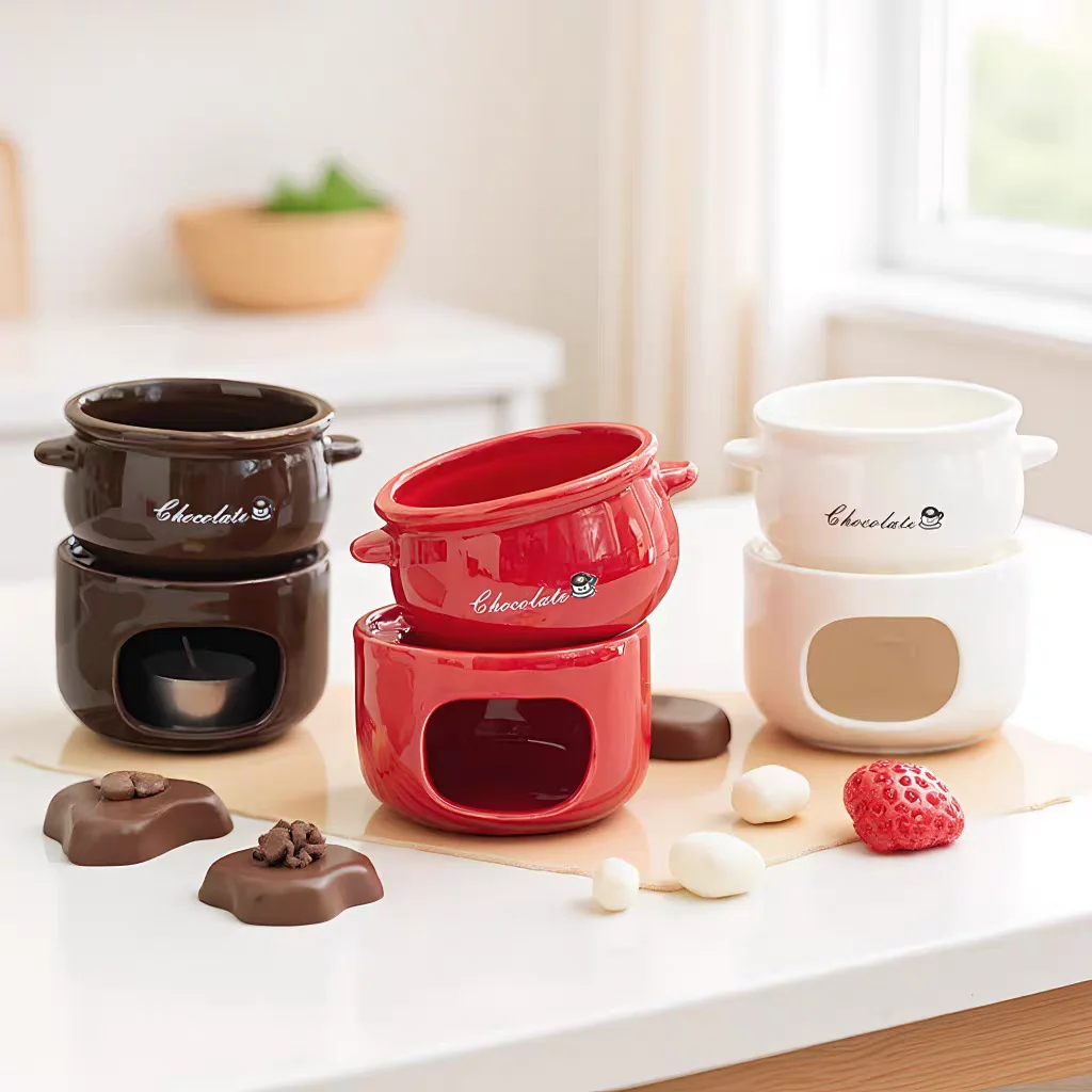 Tazza per sciogliere il cioccolato, pentola per fonduta di formaggio, scaldasalviette per caramelle, per burro, formaggi, riunioni di famiglia, cucina domestica di Natale
