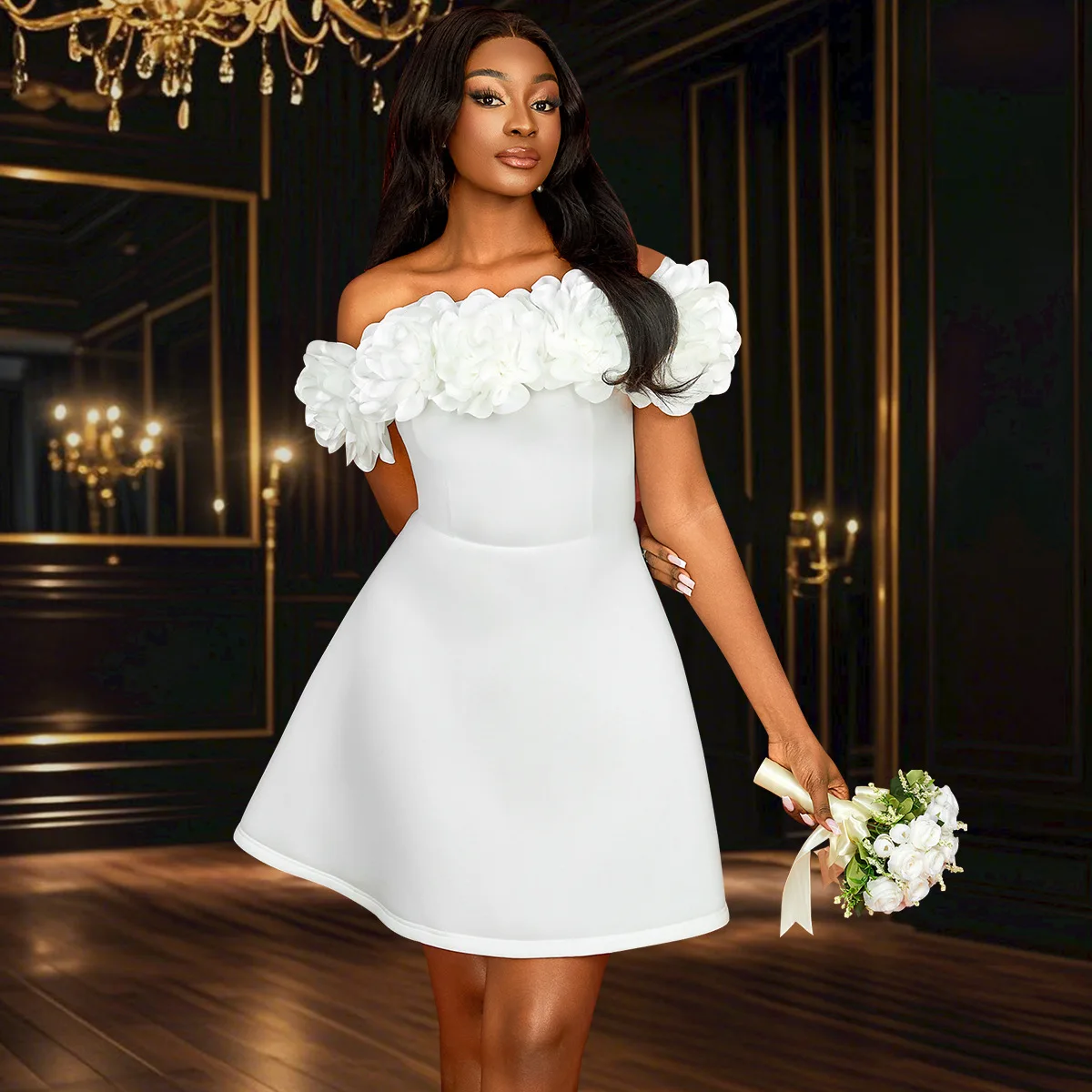 Stile francese nuova moda donna bianco tinta unita slash neck lunghezza al ginocchio casual trendy elegante abito cerimoniale abiti femminili