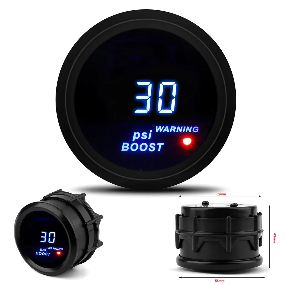 Manometro digitale per auto da 2 pollici (52 mm) per la pressione del turbo (PSI, BAR), temperatura dell'acqua, temperatura dell'olio, pressione dell'olio, voltmetro, contagiri e indicatore di giri/min.