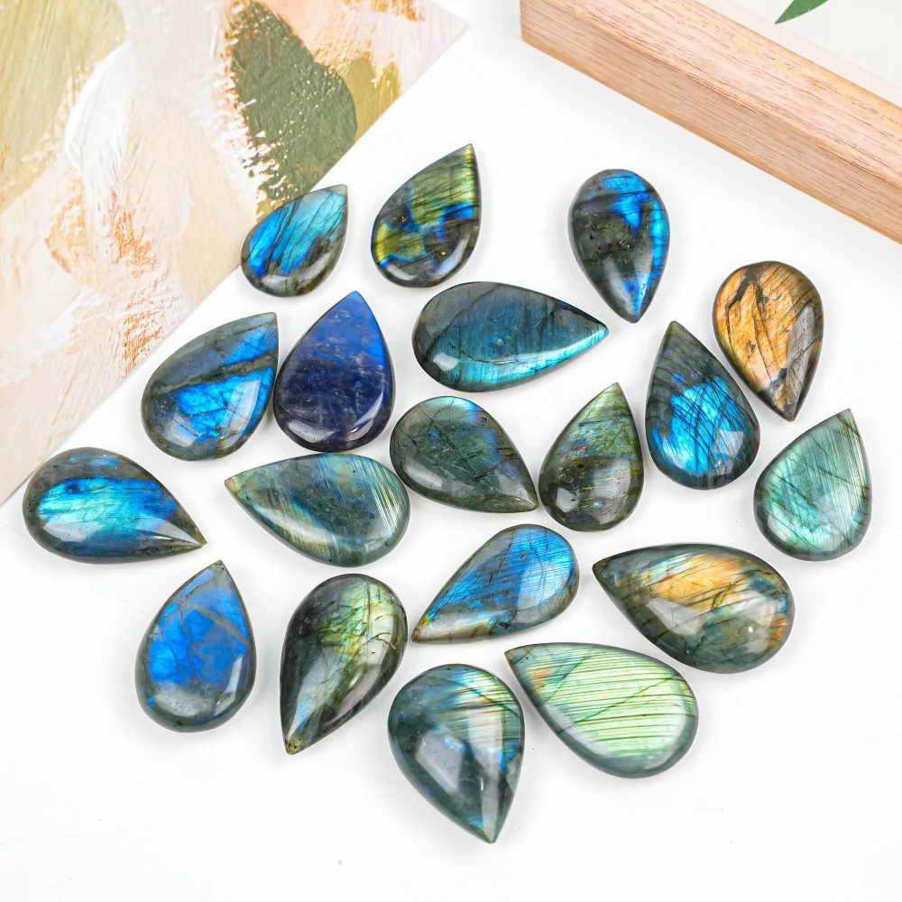 1 pezzo di labradorite naturale intagliata a forma di gocce d'acqua, superficie liscia con un enigmatico bagliore blu, ideale per bracciali e ciondoli