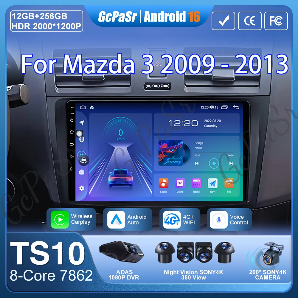 Autoradio Carplay per Mazda 3 2009 2010 2011 2012 2013 Android 16 Navigazione GPS Lettore Multimediale No 2din 4G WiFi 4G BT Schermo