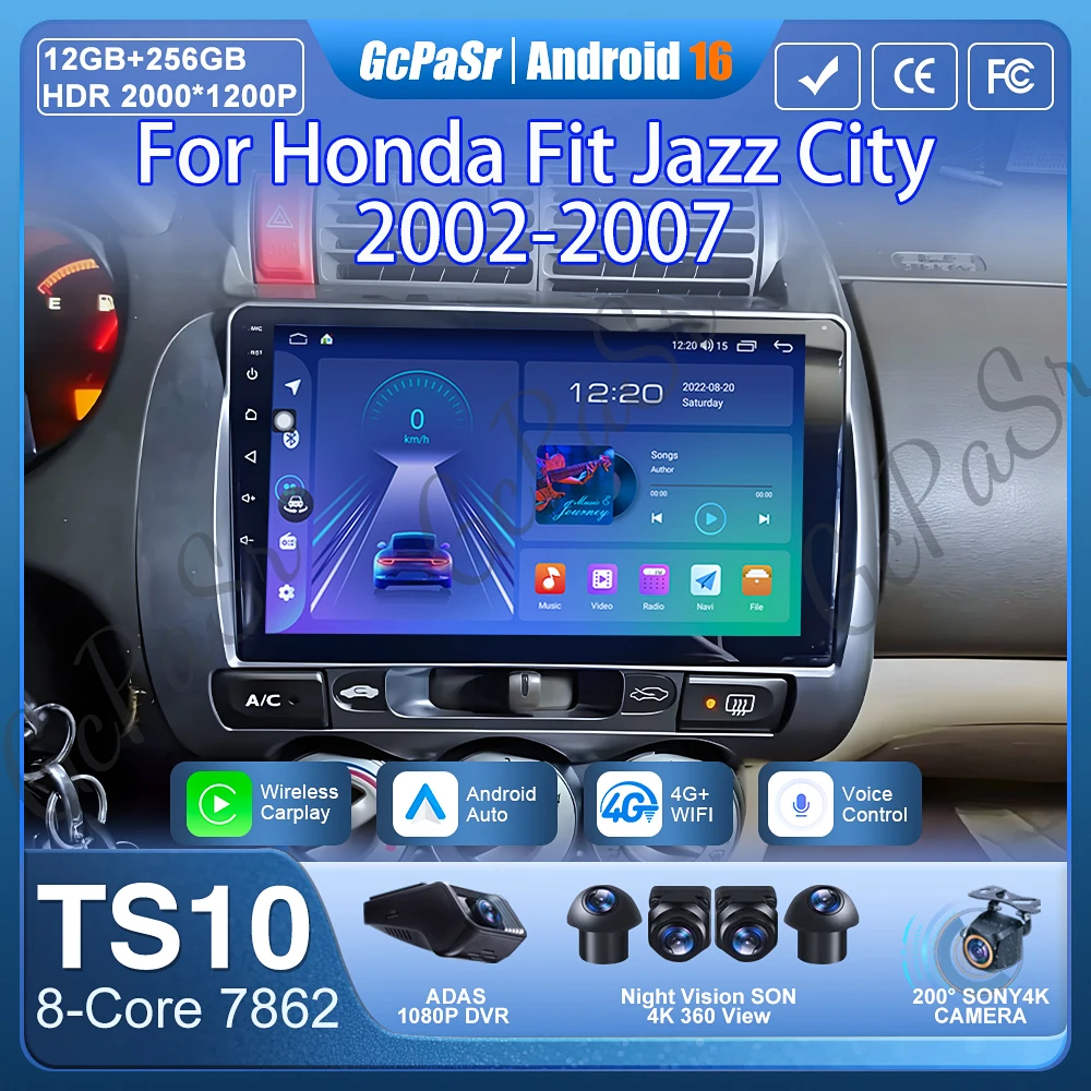 Per Honda Fit Jazz City 2002-2007 Autoradio Android 16 Carplay Navigazione GPS Unità principale stereo Android Auto No 2din DVD Wifi 5G