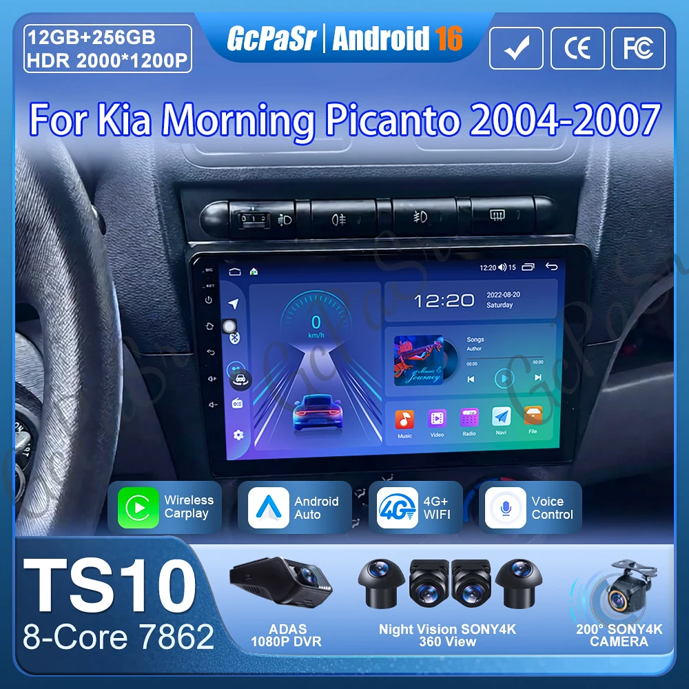 Per Kia Morning Picanto 2004-2007 Autoradio Android 16 Navigazione GPS Video Auto Stereo Lettore Multimediale Schermo No 2din DVD 5G