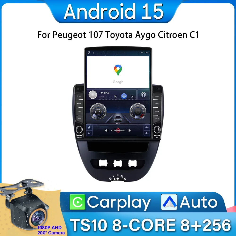 Android 15 Autoradio Da 9.7 Pollici Per Peugeot 107 Toyota Aygo Citroen C1 Carplay di Navigazione GPS Android Auto Car Monitor No 2din 4G