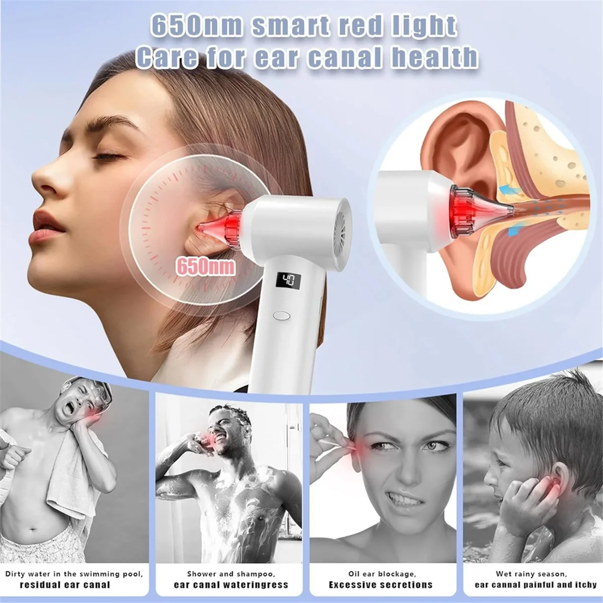 Nuovo Nuovo asciuga orecchie intelligente per il nuoto, ingresso dell'acqua da bagno, asciugacapelli elettrico ad aria calda, asciugatura del canale uditivo che inibisce i batteri
