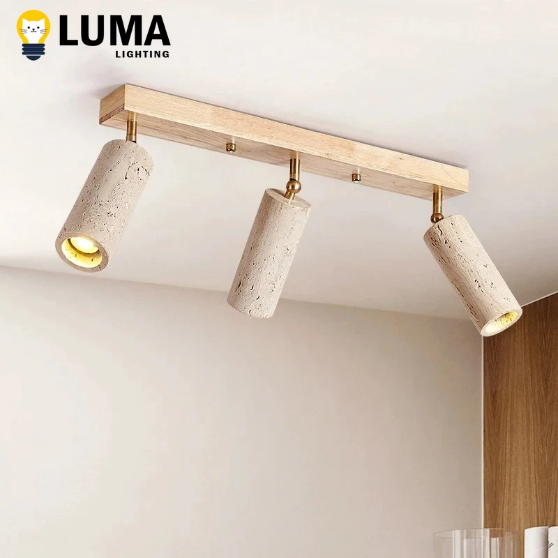 Lampada da soffitto in travertino giallo stile giapponese Wabi-Sabi, faretto a 3 teste in pietra grotta per camera da letto, guardaroba, corridoio, negozio di abbigliamento