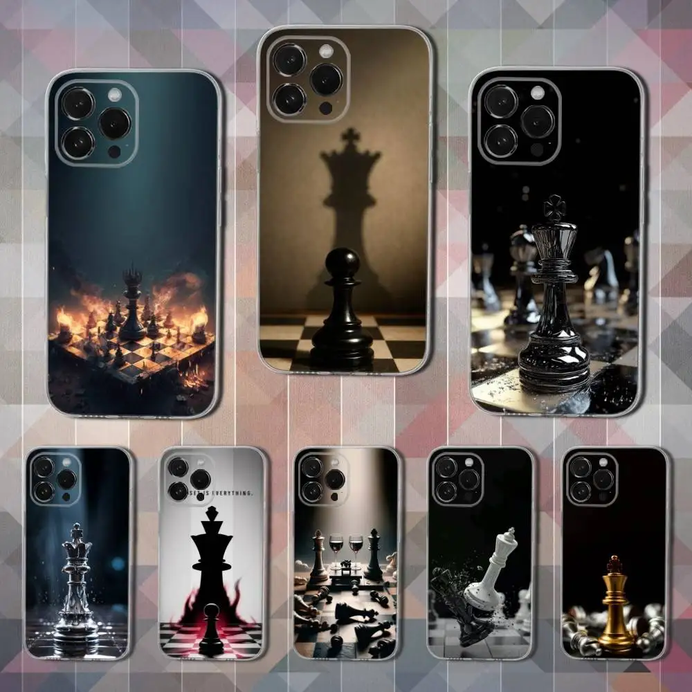 Custodia per telefono Board Art Chess per iPhone 16,15,14,13,12,11,17 Pro,Max,Plus,X,XS,XR,SE,Mini Cover morbida trasparente