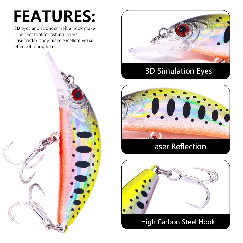 YUCONG 1PC Minnow Wobbler Fishing Lure 6cm-4.3g Sinking Bait Mini Jerkbait Wobblers Swimbait rumoroso Hard Bait hartkounder duro cebo