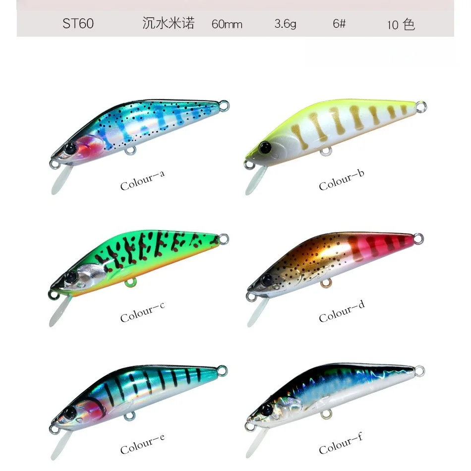 6 centimetri 6.5g Richiamo di Pesca Dei Ciprinidi Wobbler 60S Affondamento Jerkbait Swimbait Artificiale Esca Dura Pesca All'oceano Bionic Esca Bass