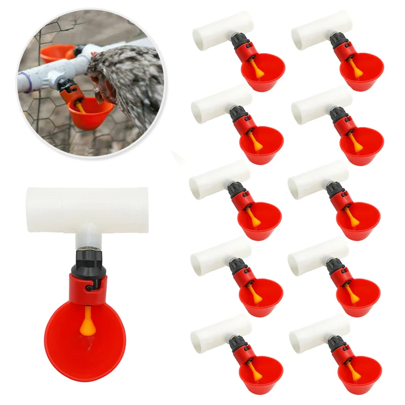 10 pezzi automatico per pollo, quaglie, ciotola, tazze d'acqua per uccelli, tubo dritto con capezzolo giallo, sistema di acqua potabile per pollame