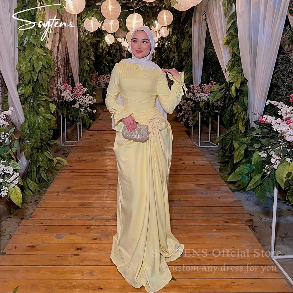 SSYTENS eleganti abiti da sera in raso giallo a maniche lunghe abiti da cerimonia formale matrimonio Arabia Saudita abito da ballo di fine anno personalizzato