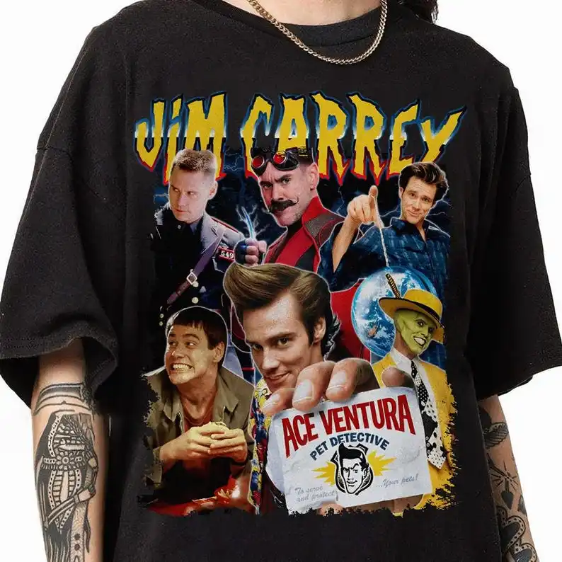 Camicia bootleg Jim Carrey vintage anni '90, maglietta da detective per animali Ace Ventura, maglietta retrò, regalo per papà, regalo per lui