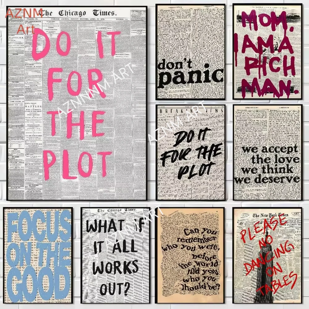 1 pz Poster in carta bianca con citazione popolare a tema giornale retrò rosa, adesivo impermeabile per decorazione murale artistica estetica per caffetterie e bar