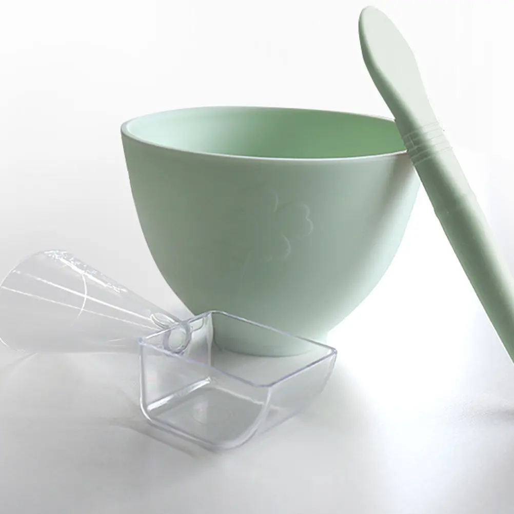 Set di 2 Ciotole e Pennelli per Maschere Facciali, Kit di Strumenti di Bellezza in Silicone Rosa e Verde, Ciotola per Maschera, Spatola e Cucchiaio Dosatore per Donne