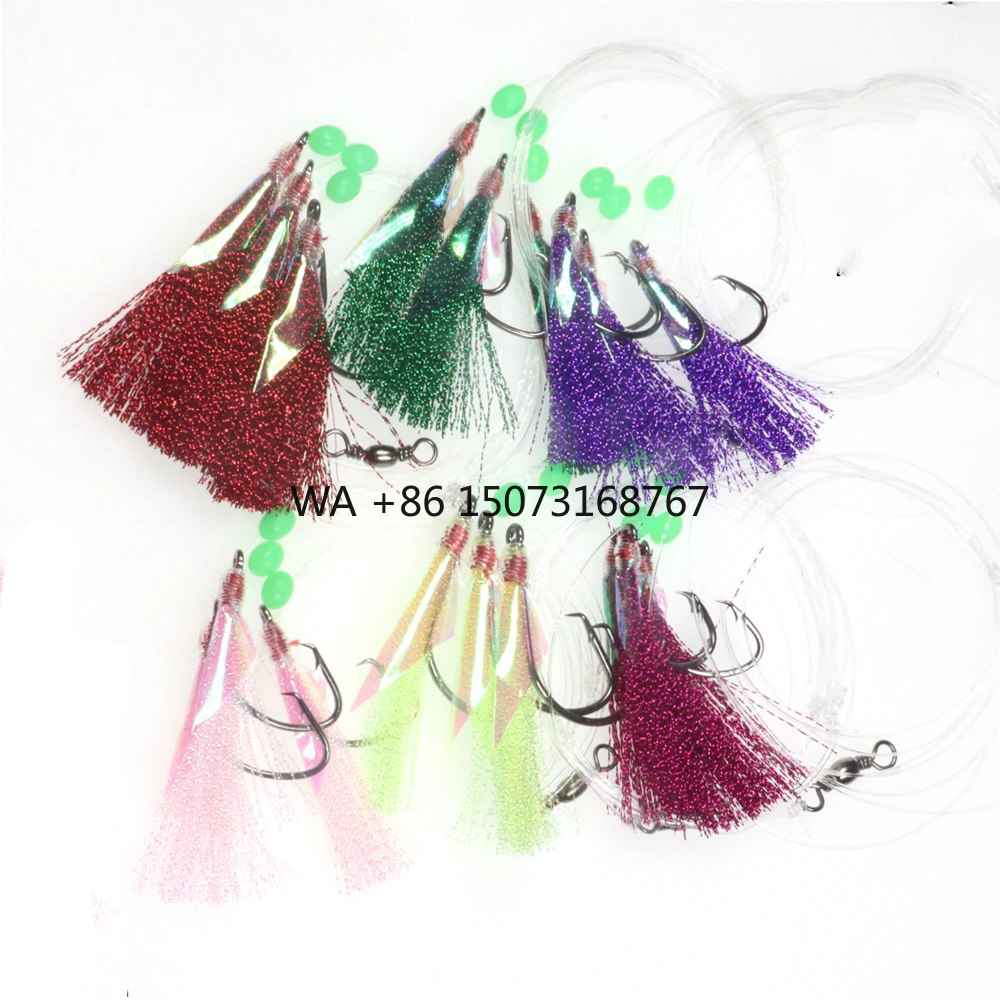 5 bags 5/0 5 colori pesca in mare rigs sabiki esche artificiali per salmone, arghe, sgombro, ami grandi pesca in mare pesca a traina trota rigs