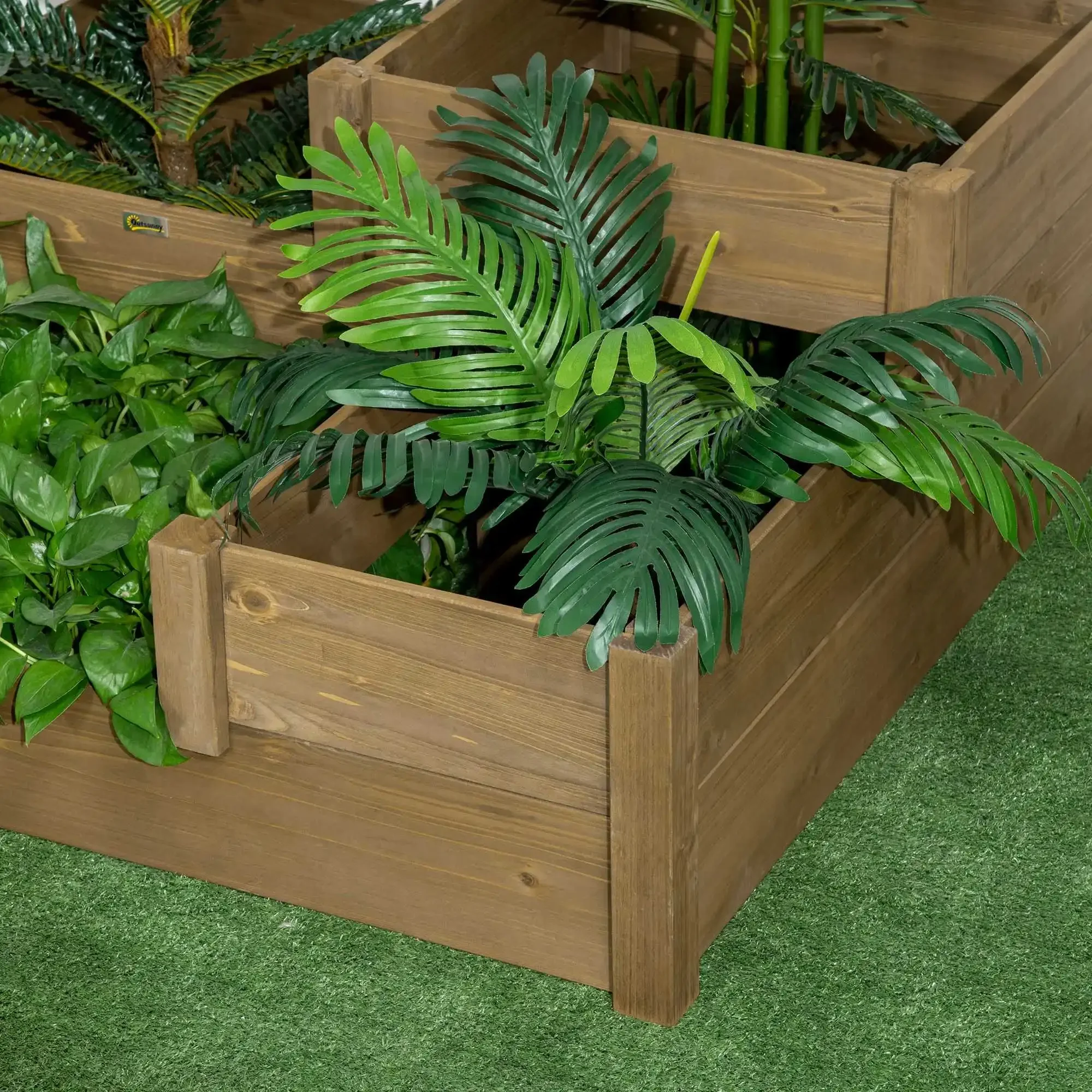 Letto rialzato per verdure a 3 livelli, fioriera per erbe, legno di abete, marrone, 122x122x51 cm per terrazza e balcone