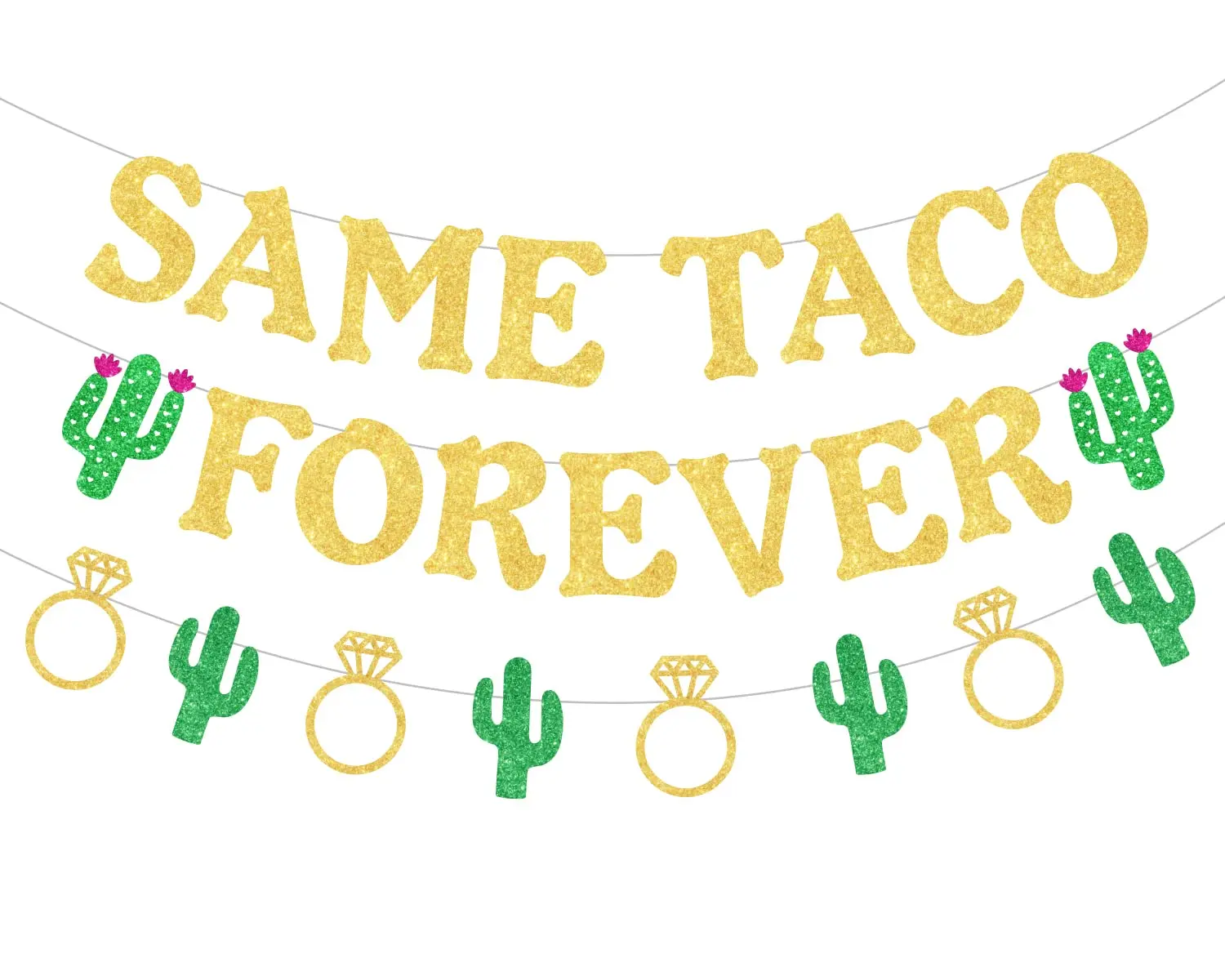 Cheereveal Decorazioni per addio al nubilato lesbico, stessa ghirlanda di anelli di diamanti con cactus per banner Taco Forever per Fiesta Gay