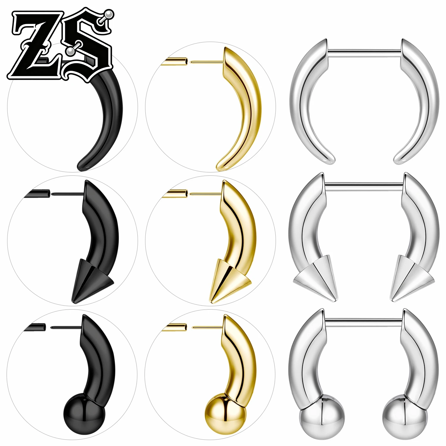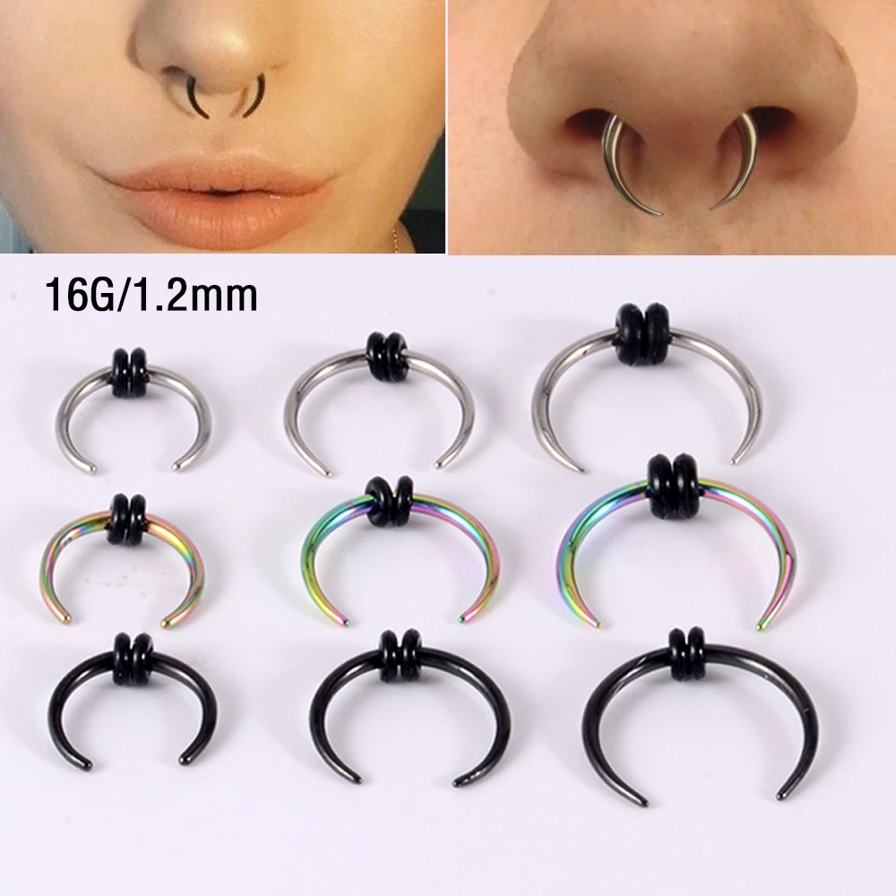 1-3 pezzi in acciaio inossidabile conico bufalo anello al naso nero punk setto piercing al naso, acciaio pincher setto anelli a forma di C perno al naso
