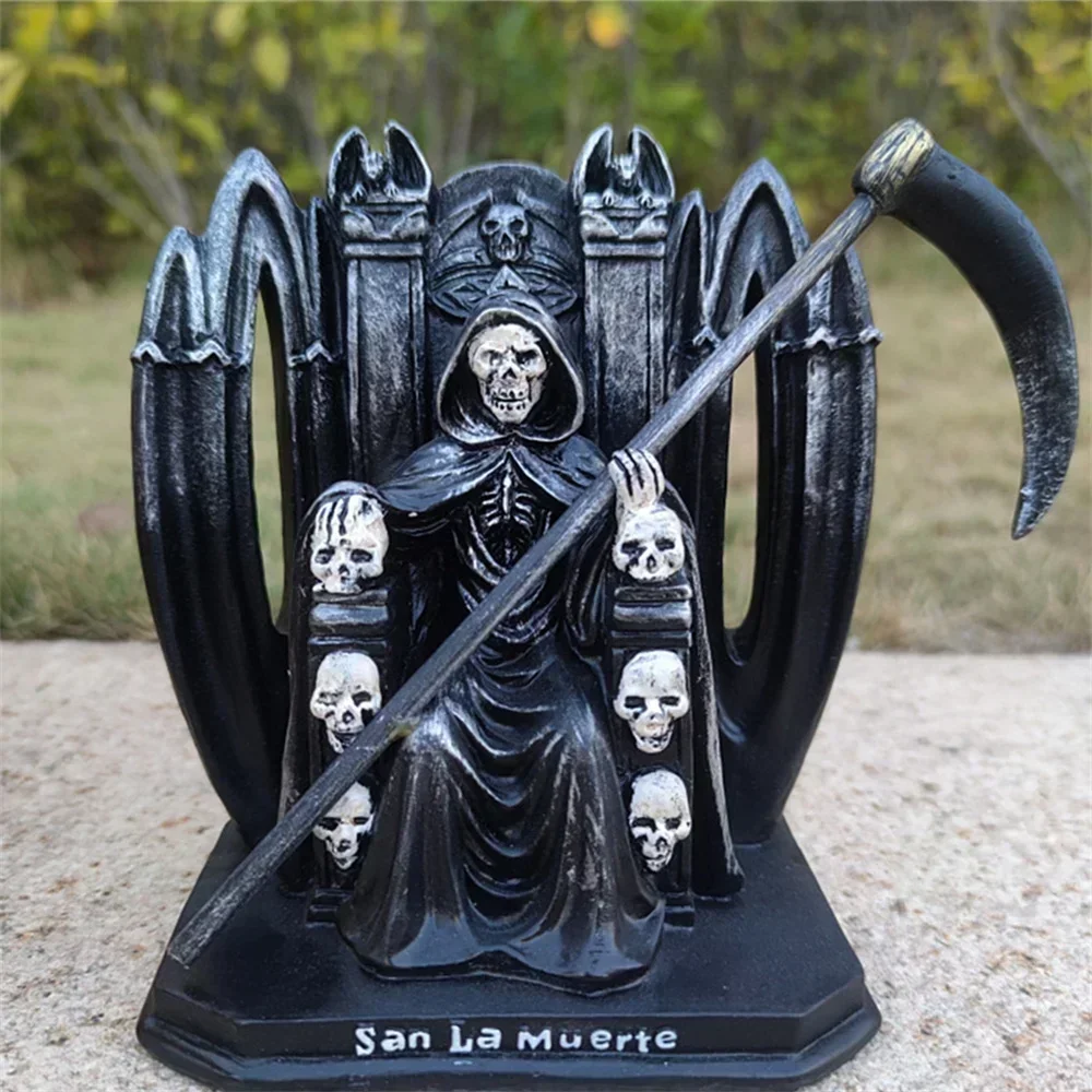 1-2PCS Statua della Morte In Piedi Falce Reaper Resina Rrafts Statua Santa Muerte Figurine Grim Reaper Tenendo Falce Halloween Decor