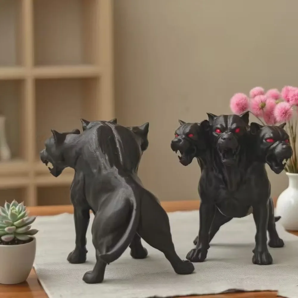 1 statua di cane a tre teste in stile gotico - statua di animale di simulazione mitica greca Hellhound, decorazione di Halloween nera horror