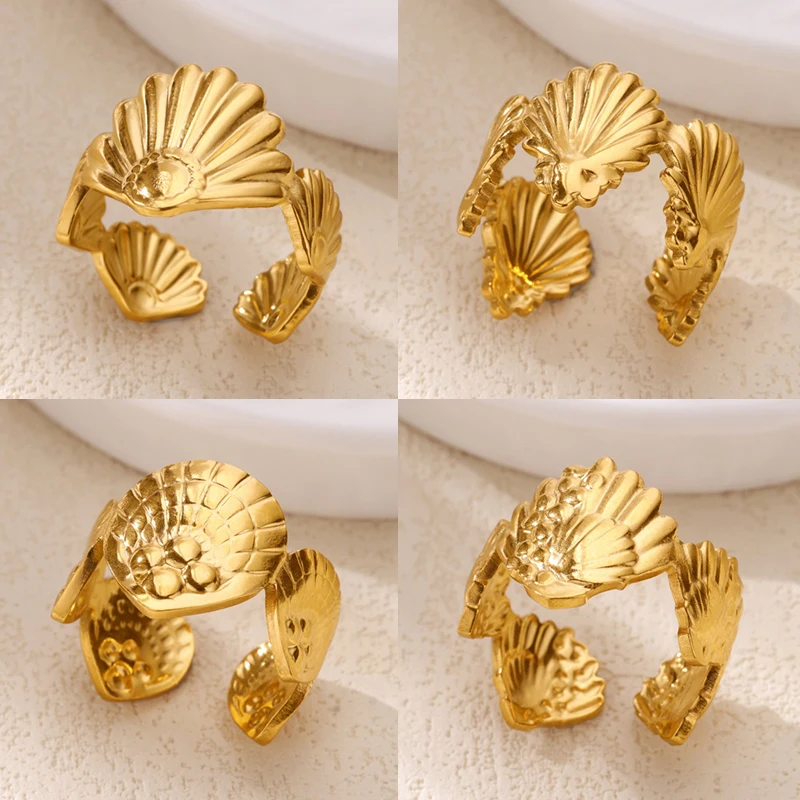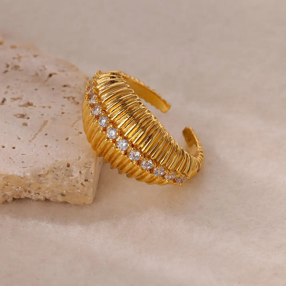 Anelli di cozze robuste con zirconi per le donne Anello di apertura geometrico in acciaio inossidabile color oro Regalo di gioielli estetici per matrimoni 2024