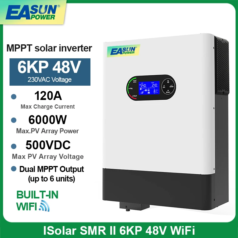 EASUN Inverter solare ibrido 6KW 48V 230V 120A Mppt Carica solare On & Off Grid Con supporto WIFI parallelo