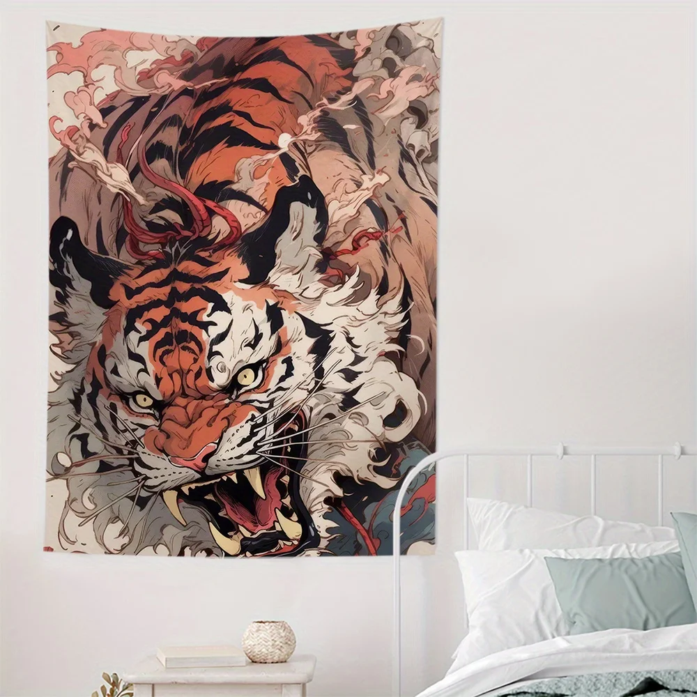 1 arazzo verticale estetica decorazione da parete tigre ruggente impostando decorazione domestica sfondo panno appeso