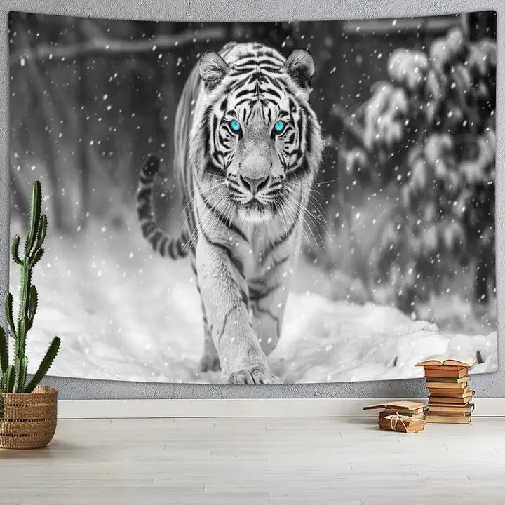 Arazzo da parete tigre bianca di lusso con effetti visivi 3D per soggiorno, camera da letto, ufficio, rivestimento murale per feste 150X200CM 180X280CM