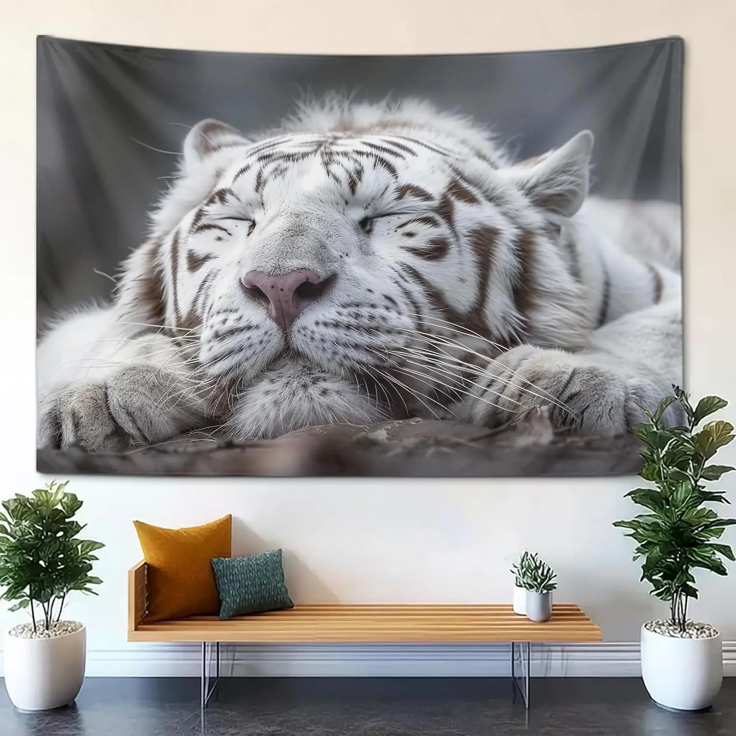 Arazzo da parete Arte della parete Tigre bianca Simpatico animale Sonno Arazzo estetico Camera da letto Soggiorno Decor per uomini e donne Arazzi