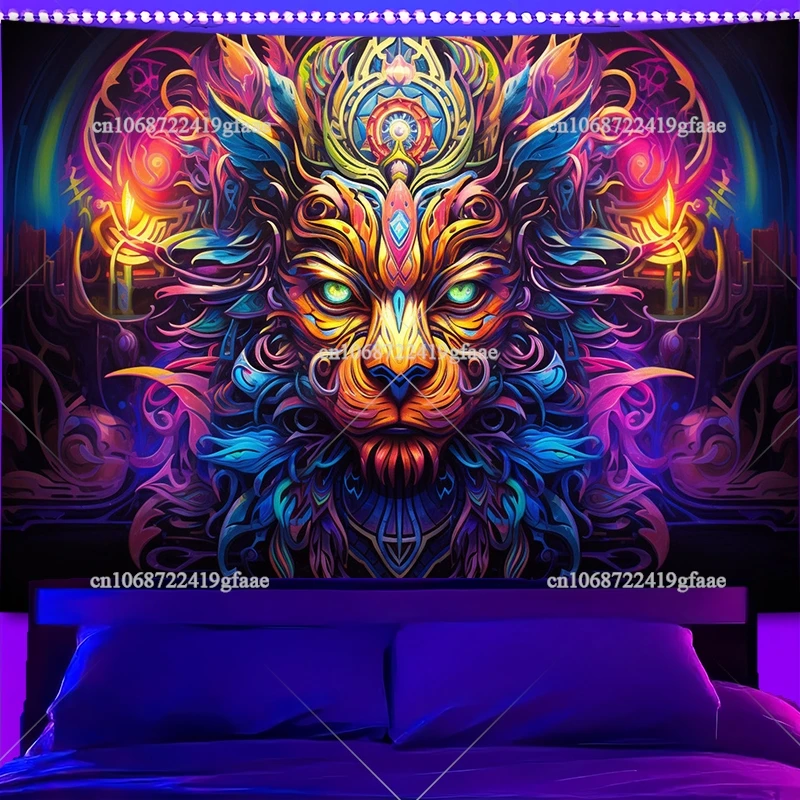 Animali Psy Arazzo a luce nera Reattivo UV Appeso a parete Tigre Cartoni animati Gatto Arazzi fluorescenti Arazzi al neon estetici