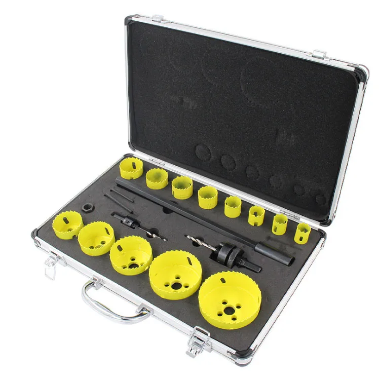Set di 19 pz. di frese a tazza bimetalliche con mandrino e punta pilotante per metallo, carpentieri e idraulici