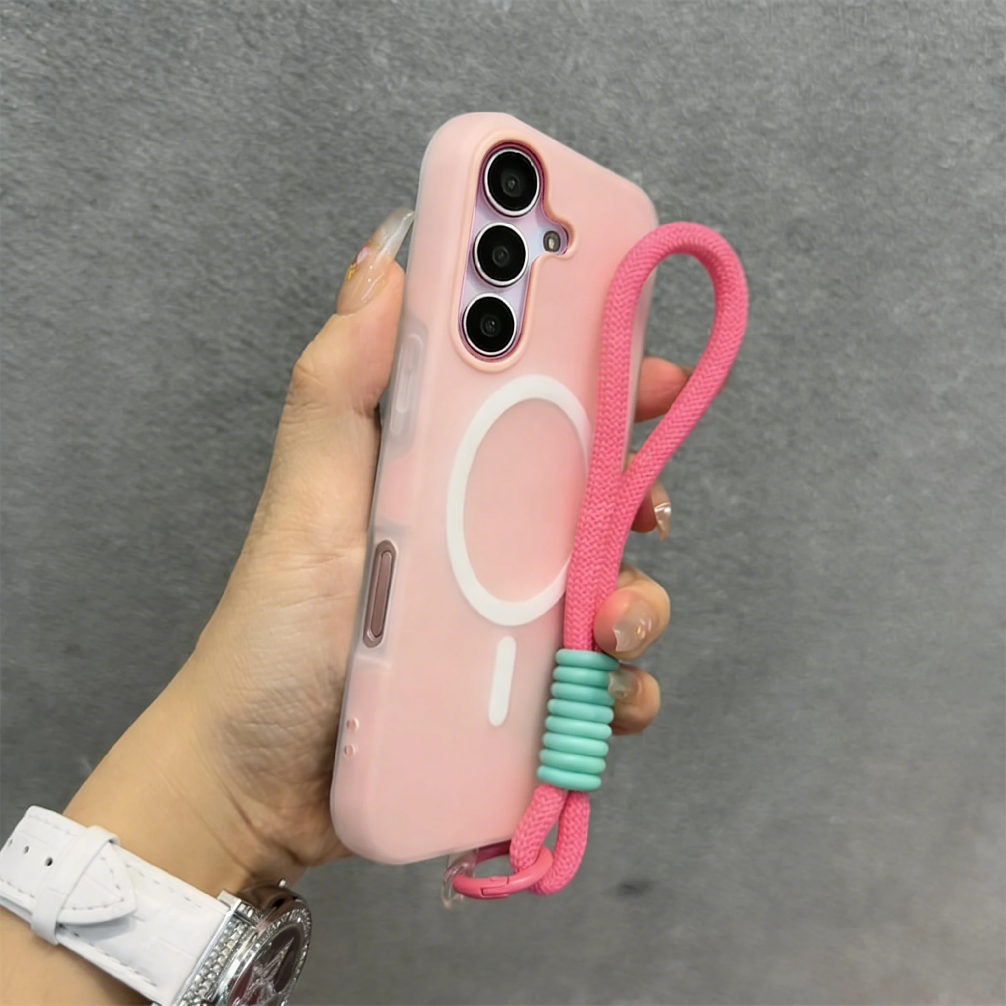 Custodia Magnetica Candy per Samsung Galaxy S25 FE S24 FE S26 S25 S24 S23 Ultra S26 Edge S25 Plus con Cinturino da Polso