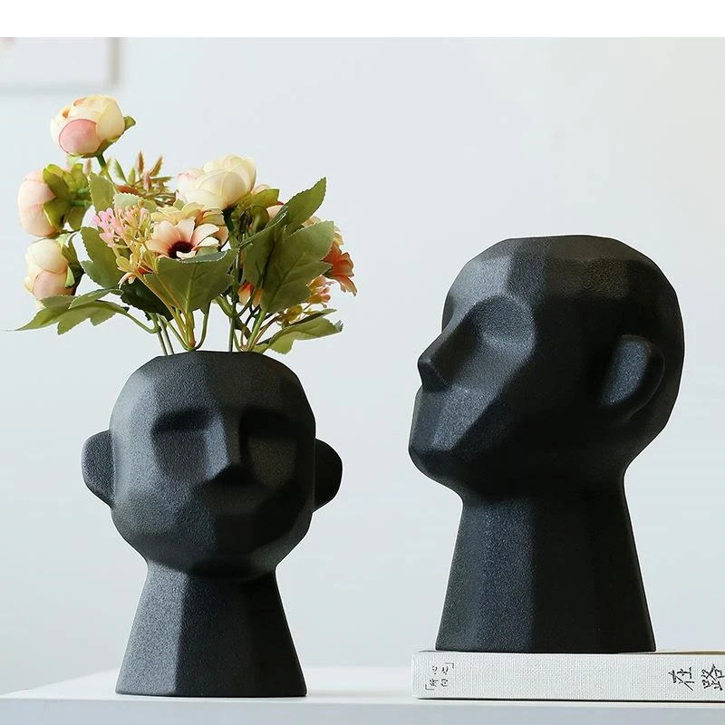 Ritratto astratto Avatar Ceramica Vaso Composizione floreale Nero/Bianco Statua umana Vasi Vasi Decorazione domestica Moderna