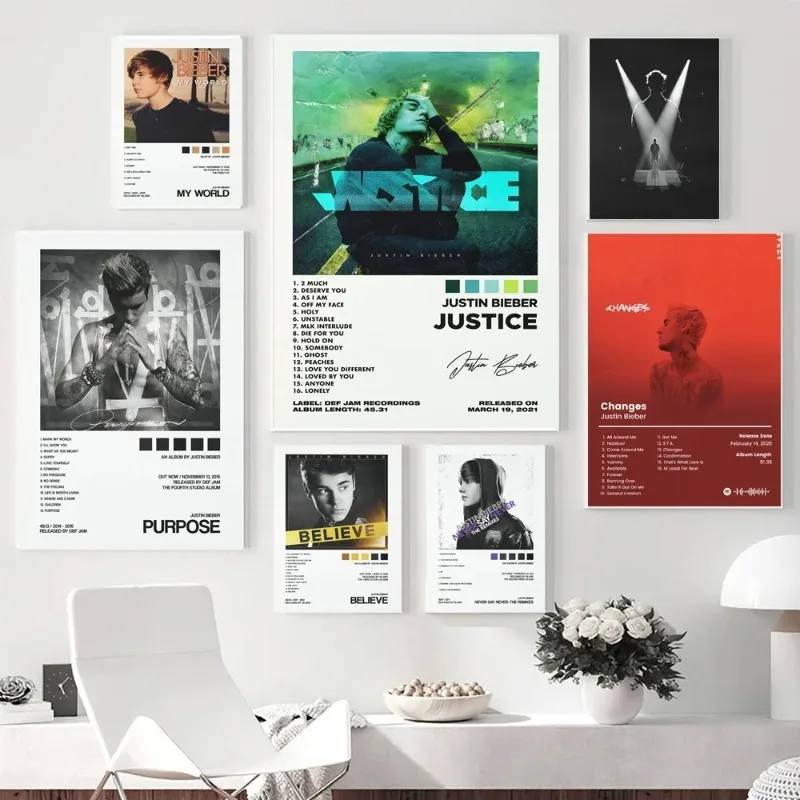 Stella musicale Justin Bieber Justice Copertina dell'album Lista della traccia Pittura su tela Foto d'arte murale Decorazione della casa della stanza dei regali