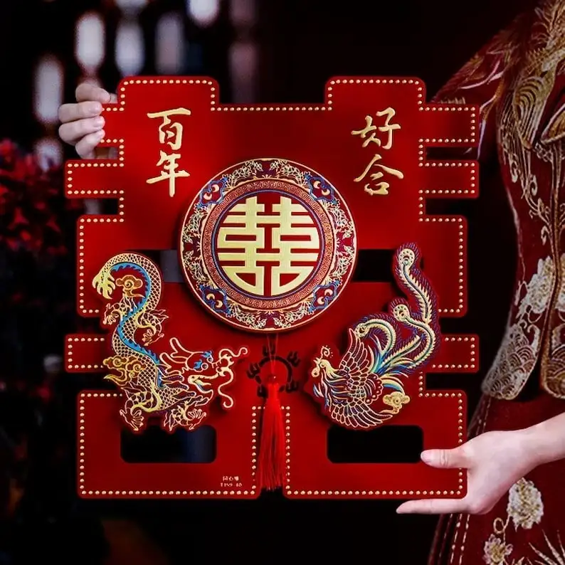 doppia felicità decorazione da parete decorazione di nozze sposa e sposo Decorazione cinese doppia felicità cerimonia del tè Matrimonio asiatico