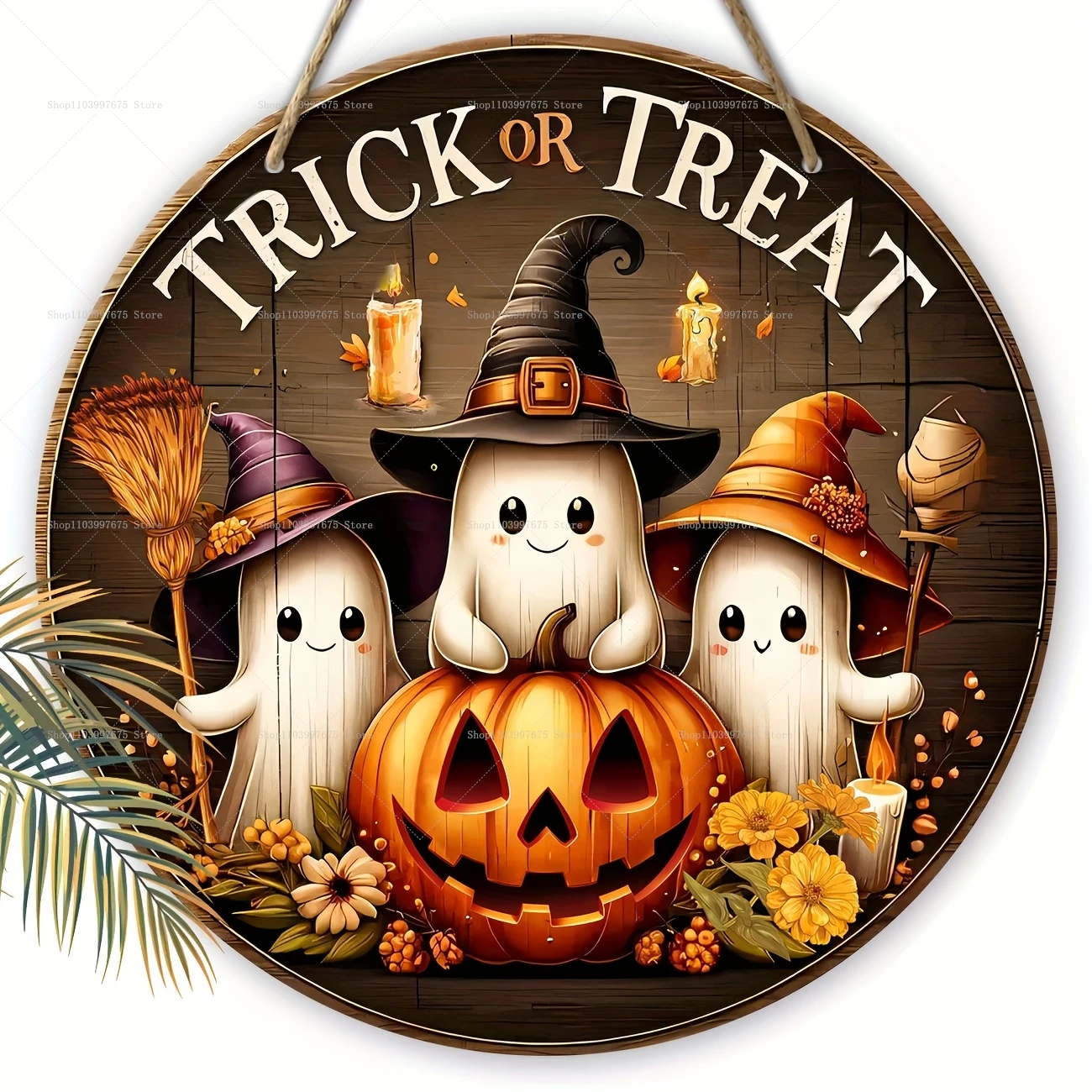 Decorazione per feste di Halloween 2D Cartello in legno Zucca Fantasma Pipistrello Dolcetto o scherzetto Cartello da appendere alla parete Porta d'ingresso Decorazioni per la casa Regali per bambini