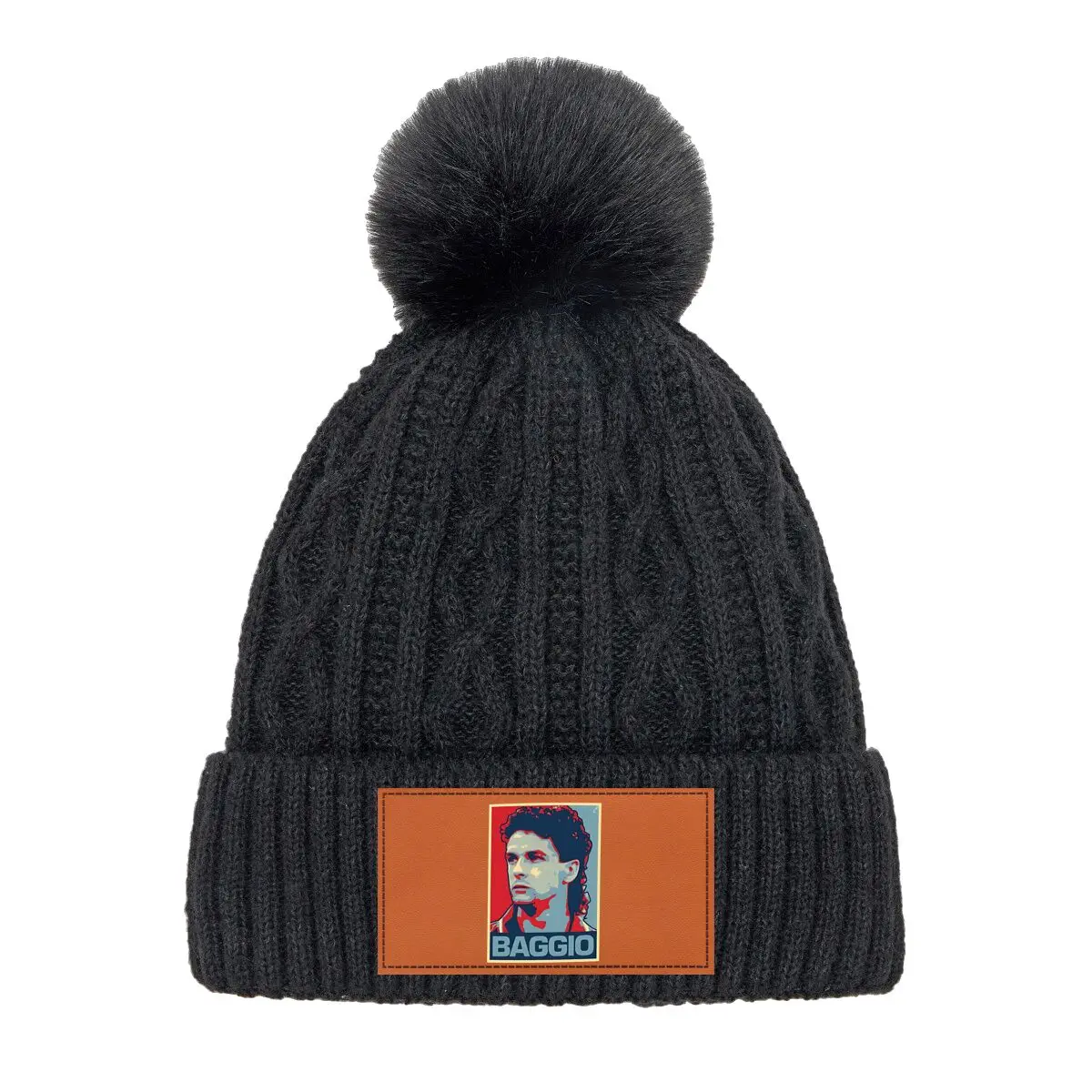 Cappello lavorato a maglia elegante dal design a tema Roberto Baggio Pop. Cappello lavorato a maglia invernale accogliente